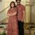 Stylish and coordinated red cotton couple outfit featuring vertical vine hand block prints. The breezy dress with a V-neck and the casual short-sleeve shirt make this a versatile duo for casual outings or festive gatherings.